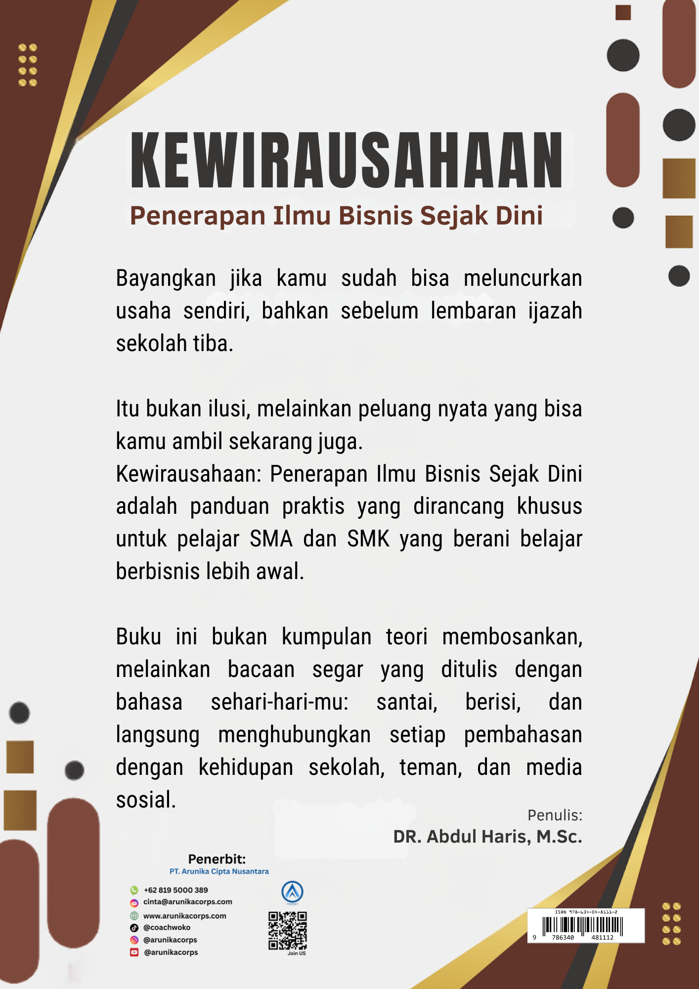 Kewirausahaan: Penerapan Ilmu Bisnis Sejak Dini adalah panduan praktis yang dirancang khusus untuk pelajar SMA dan SMK yang berani belajar berbisnis lebih awal.